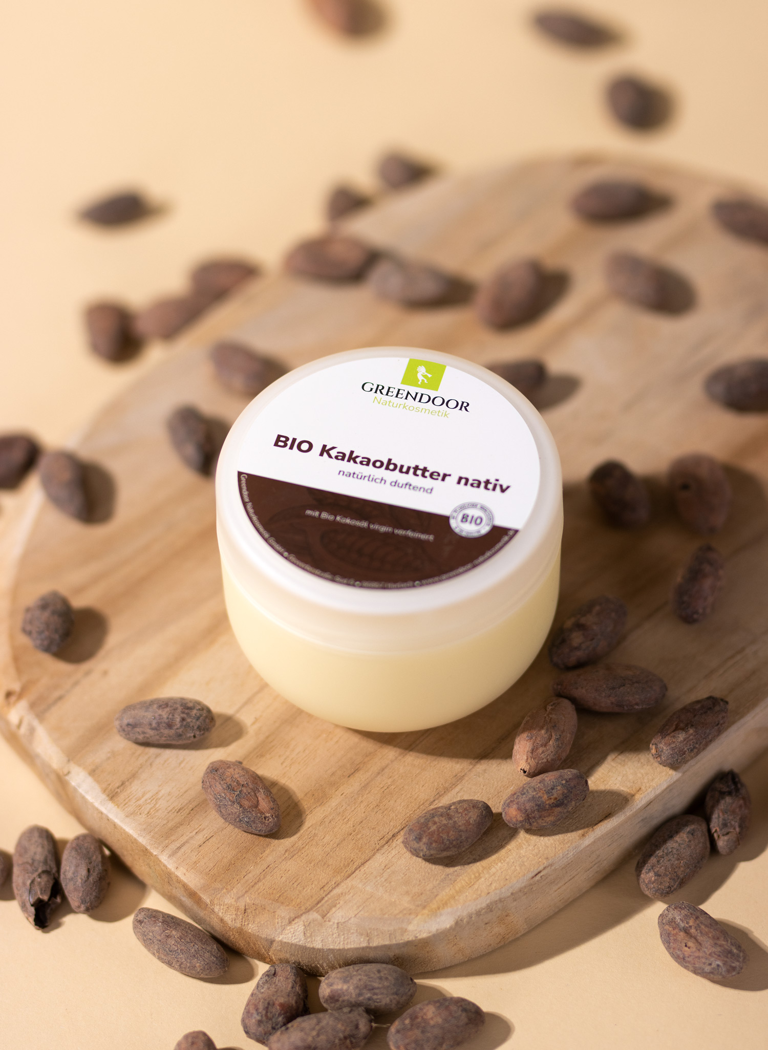 GREENDOOR Bio Kakaobutter virgin ist reich an Vitaminen, Mineralien und Spurenelementen. Laurinsäure + Antioxidantien sind zellschützend und geben deiner Haut ein gesundes Aussehen.