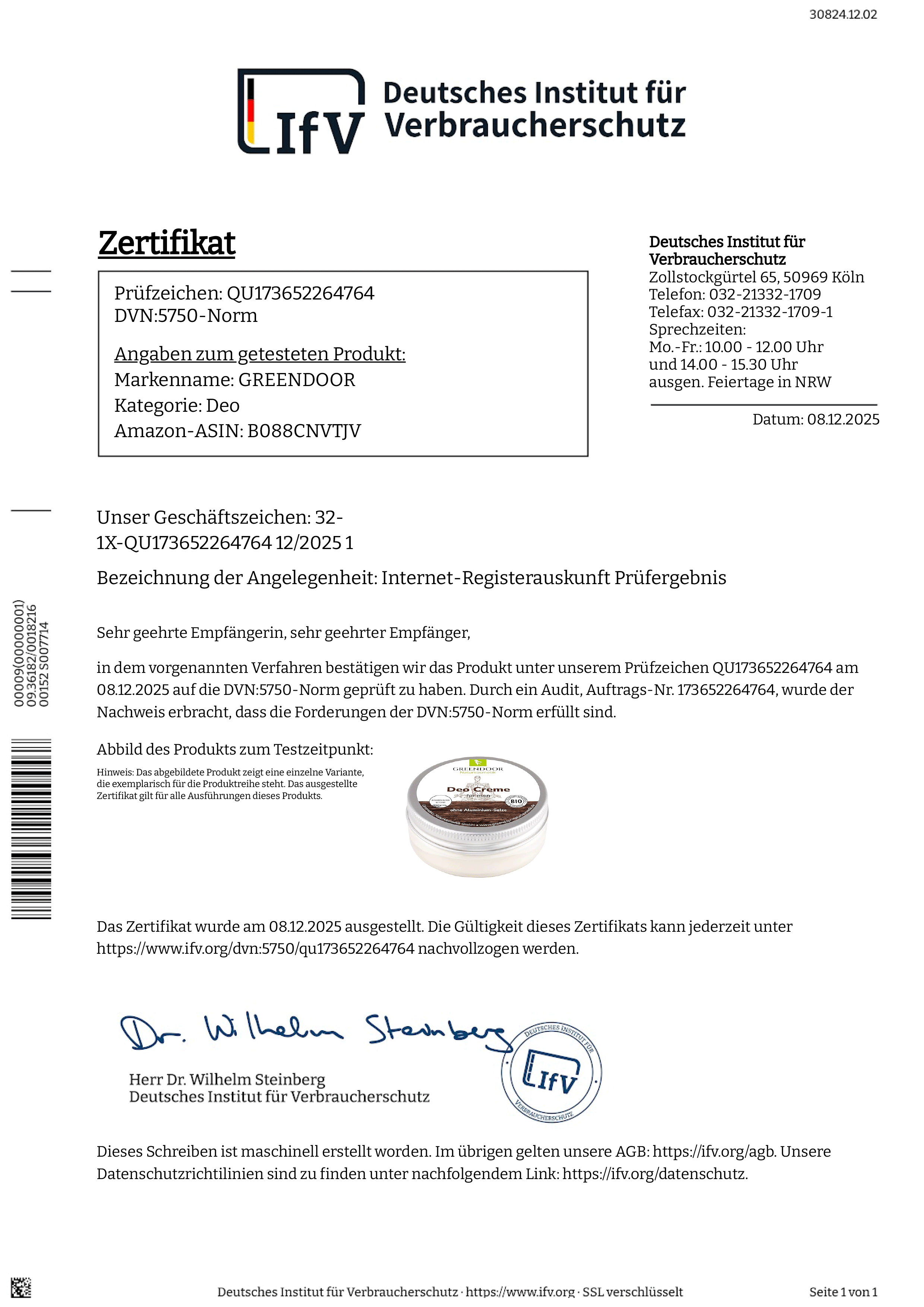 GREENDOOR Deo Creme for men ist Dank der speziellen Mischung aus perfekt aufeinander abgestimmten natürlichen Stoffen gleichzeitig wirksam und pflegend - geprüfte Qualität (Deutsches Institut für Verbraucherschutz).