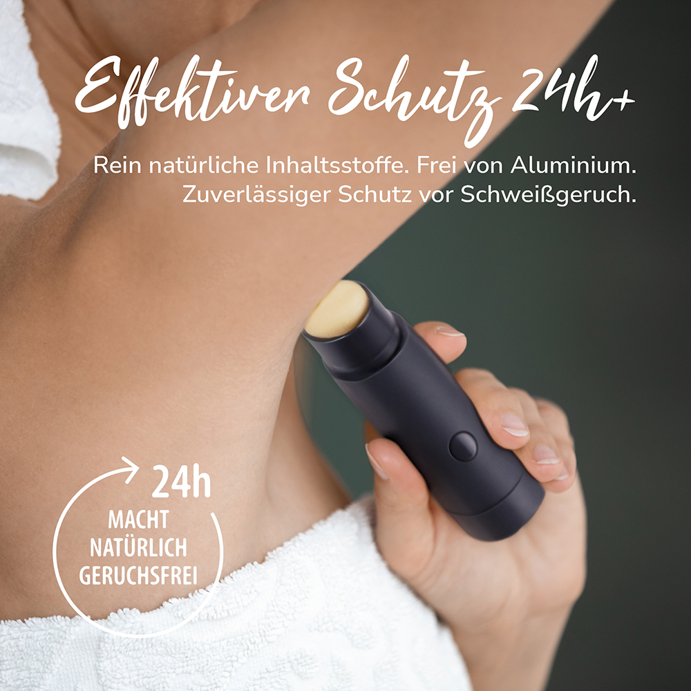 Der milde cremige unisex Duft ist bei Männern und Frauen gleichermaßen beliebt. Jedes individuelle Parfum kann parallel dazu verwendet werden. Auf Aluminium-Salze und Ethanol-Alkohol wurde verzichtet. Deine Haut kann atmen, die Poren bleiben frei. Du genießt den ganzen Tag ein sicheres, frisches Gefühl – ohne Kompromisse.
