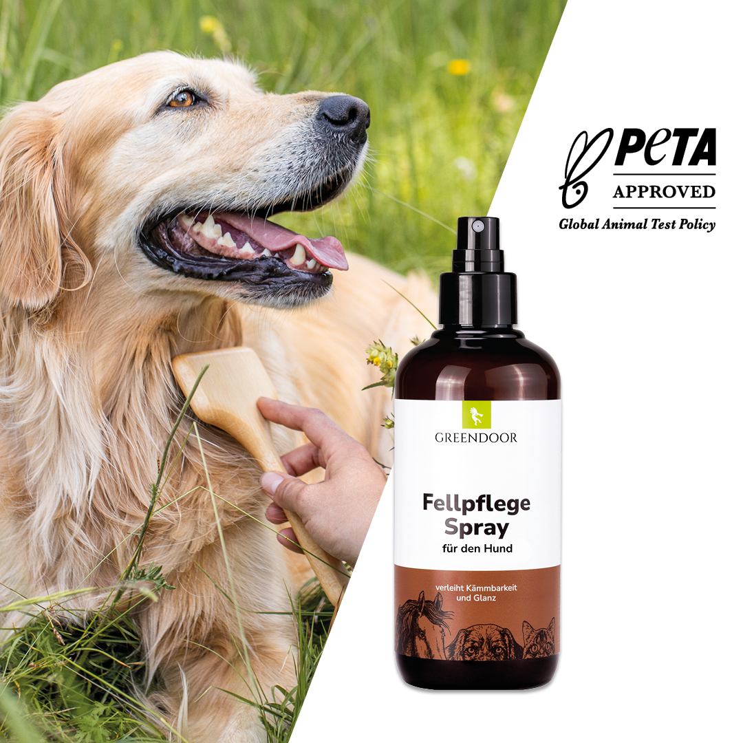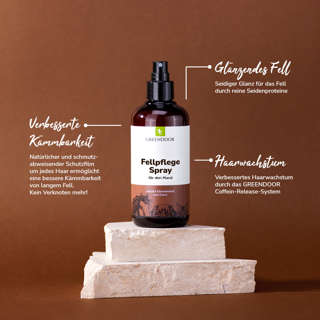 GREENDOOR Fellpflege Spray verleiht dem Fell langanhaltenden und seidigen Glanz. Reine Seidenproteine bilden einen Schutzfilm um jedes Haar, langes Fell wird dadurch besser kämmbar.
