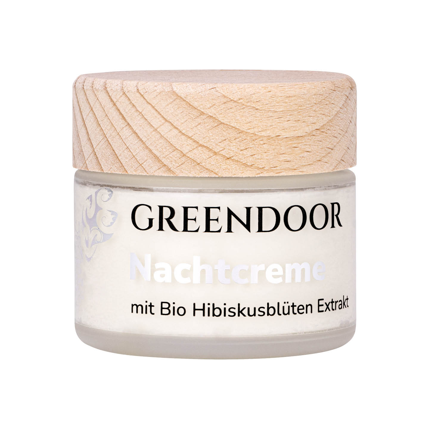 GREENDOOR Nachtcreme nährt deine Haut mit wertvollen Ölen und Extrakten. Feuchtigkeitsspendende Avocadobutter und wertvolle Bestandteile aus Olivenöl machen deine Haut geschmeidig und geben ihr Spannkraft zurück. GREENDOOR Nachtcreme ist besonders bei trockener und empfindlicher Haut geeignet. Hibiskusblüten beruhigen die Haut über Nacht und geben ihr ein erholtes, frisches und natürlich gesundes Aussehen. Passend zur Feuchtigkeitspflege bietet GREENDOOR einen innovativen Augenbalsam Intense an, der die besonders zarte Haut der Augenpartie natürlich glättet. Diese drei Produkte bilden auch optisch eine Einheit.