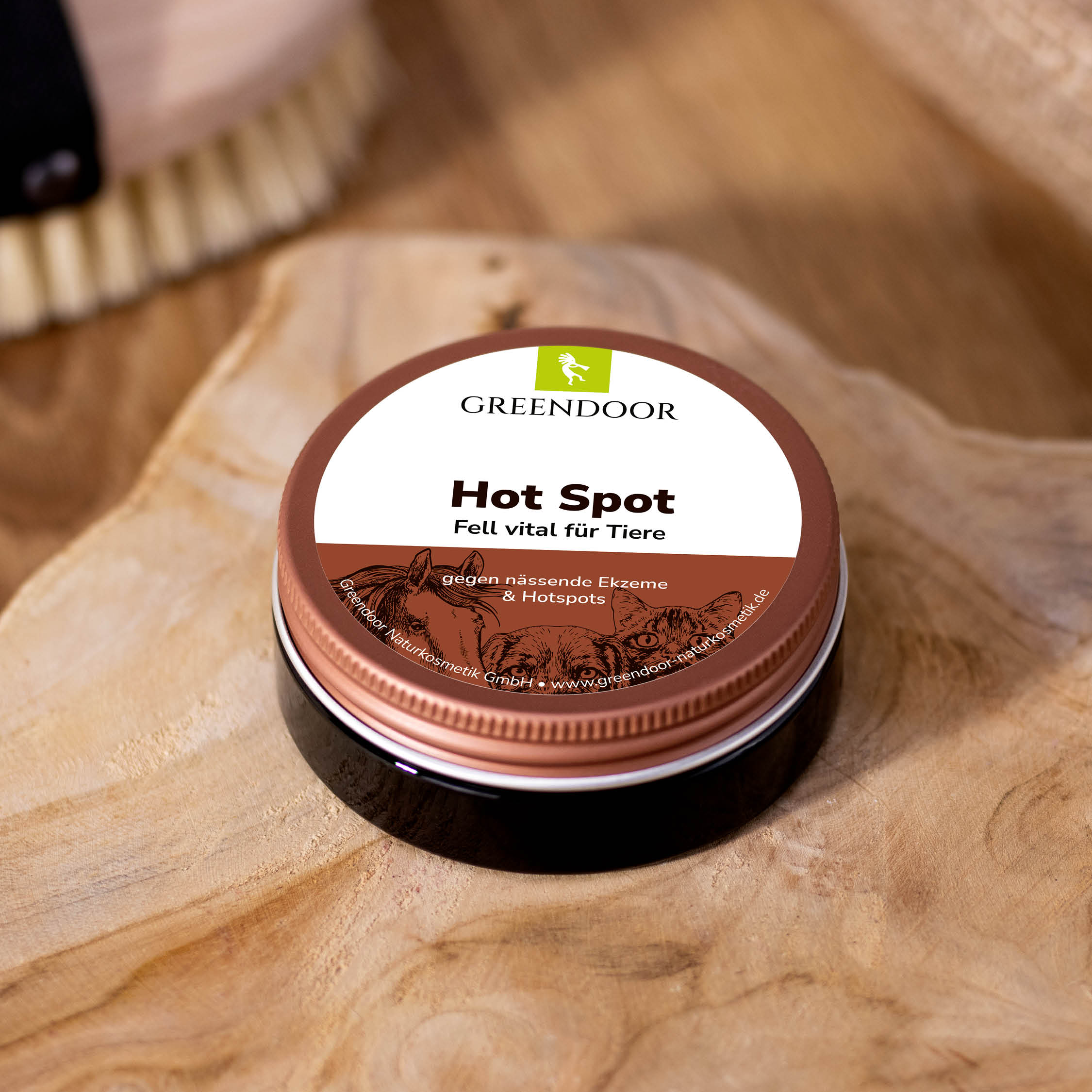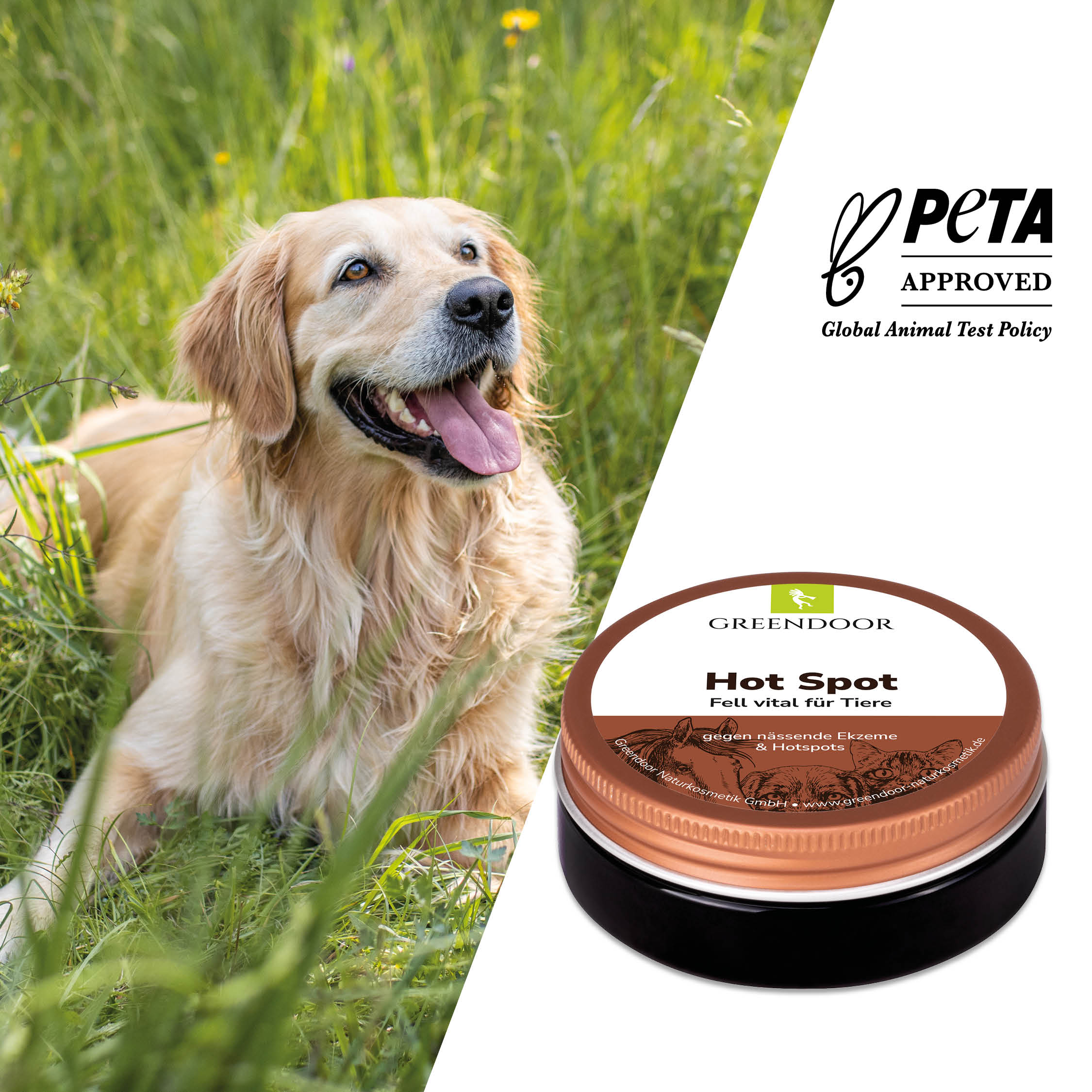 GREENDOOR Hot Spot Fell vital wird bei punktuellen Entzündungen, dem sogenannten „Hot Spot“ der Hundehaut, zur Linderung des Juckreizes und zur Regeneration der entzündeten Haut angewendet. Der Balsam nimmt den Juckreiz, lässt die Entzündung abklingen und unterstützt die Zellneubildung und somit die Regeneration von Hundehaut und Fell.