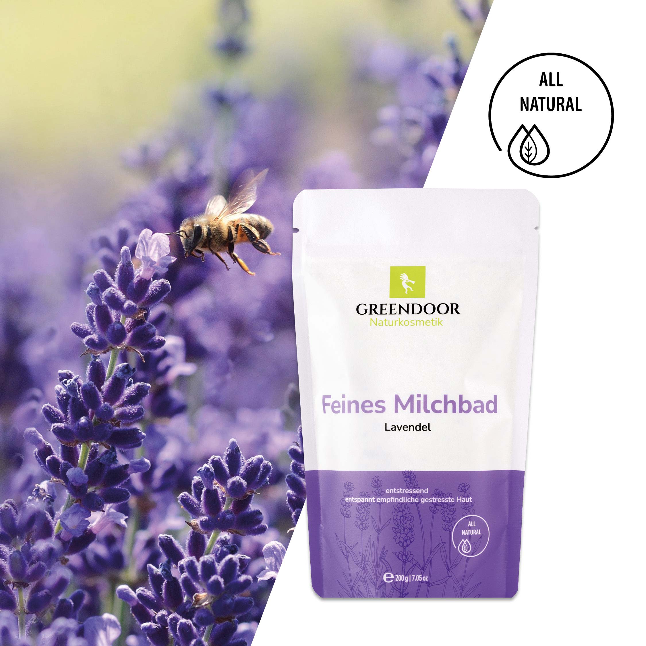 Lavendel aus der Barreme verleiht diesem Milchbad den unvergleichlich reinen und zarten Lavendelduft. Milch, Molke und Meersalz pflegen die Haut samtweich. Echte Lavendelblüten aus der Barreme garnieren das Badewasser auf natürliche Weise. Lavendel hat eine beruhigende und entspannende Wirkung. Unsere Milchbäder sind auch sehr gut für Kinder geeignet, da sie keinerlei austrocknende Zutaten enthalten.