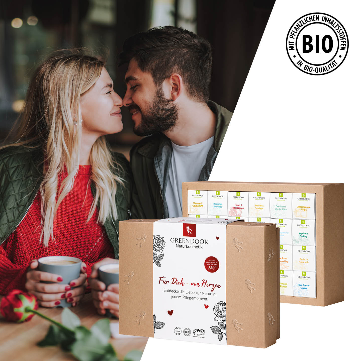 Ihre Suche nach dem idealen Muttertagsgeschenk endet hier! Entdecken Sie unser exklusives GREENDOOR Naturkosmetik Geschenk Set für eine liebevolle Haut- und Haarpflege: Das ideale Kosmetik Valentinstags Geschenk mit hochwertigen Bio-Beauty Produkten aus unserer Manufaktur! Verleihen Sie Ihrer Dankbarkeit eine ganz besondere Note mit unserer exquisiten Auswahl an Naturkosmetikprodukten, die speziell für den Valentinstag, Muttertag, Jahrestag oder zu besonderen Anlässen zum Kennenlernen unseres breiten Sortiments kreiert wurden. Unser Set vereint hochwertige Inhaltsstoffe und liebevoll ausgewählte Düfte, um Ihrer Liebsten oder Ihrem Liebsten ein Geschenk zu bereiten, das von Herzen kommt.
