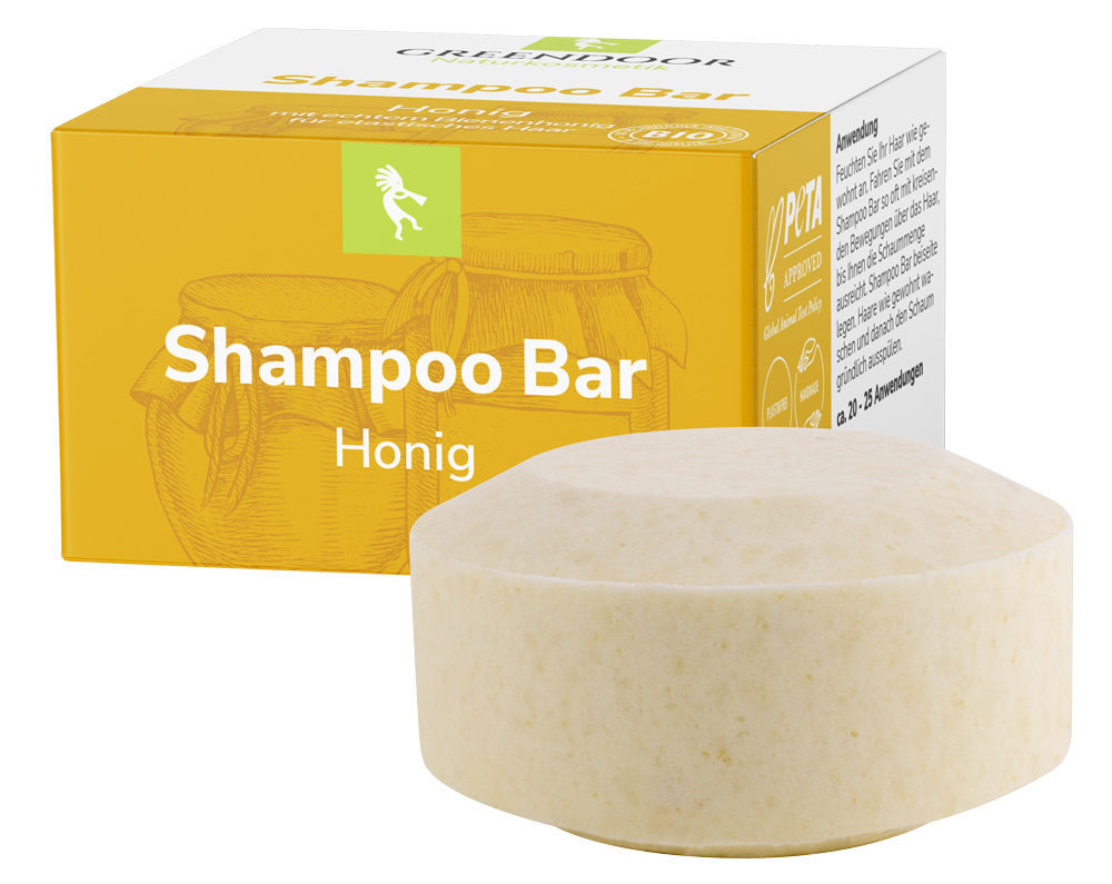 GREENDOOR Shampoo Bars sind für alle Haartypen geeignet. Der Shampoo Bar Honig ist besonders empfehlenswert bei trockenem und strapazierten Haar.